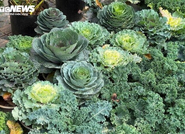 Tại chợ hoa xuân Hà Nội, rau cải xoăn, cải hoa hồng, bắp cải được biến thành cây cảnh chơi Tết với chỉ vài chục nghìn đồng/chậu, rất hút khách.