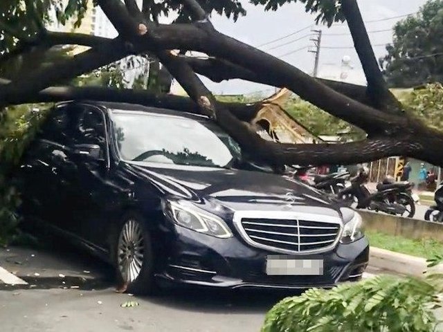 Cơn giông lốc mạnh vào giữa trưa 11/8 khiến hàng loạt cây me tây trên đại lộ Võ Văn Kiệt (TP Hồ Chí Minh) bật gốc, tét nhánh đè hư hỏng 3 xe ô tô, trong đó có xe trị giá hơn 2 tỷ đồng.