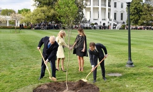 Cây sồi Trump và Macron trồng ở Nhà Trắng biến mất