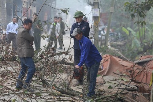 Dân làng giám sát chặt hai cây sưa trăm tỷ trong chùa ở Hà Nội
