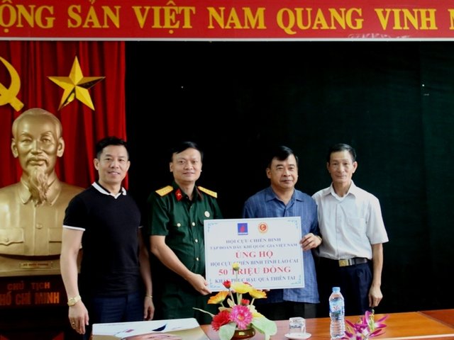Nhằm chia sẻ những khó khăn, thiệt hại mà chính quyền và nhân dân một số tỉnh miền Bắc đang phải đối mặt với những trận mưa lũ vừa qua, từ ngày 13 - 15/9, Hội Cựu chiến binh Tập đoàn Dầu khí Quốc gia Việt Nam (Hội CCB Tập đoàn) do đồng chí Lê Quang Toán, Ủy viên Ban Thường vụ, Chánh văn phòng Hội CCB Tập đoàn làm Trưởng đoàn đã trao quà ủng hộ đồng bào lũ lụt thông qua Hội CCB tỉnh Lào Cai, Lai Châu và Yên Bái.