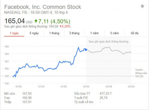 Cổ phiếu Facebook tăng vọt sau màn điều trần của CEO Mark Zuckerberg