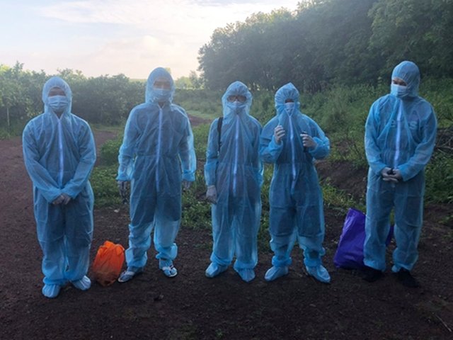 Bảy người đàn ông 19-29 tuổi nhập cảnh trái phép từ Campuchia bị Bộ đội Biên phòng Bình Phước phát hiện, giao cơ quan y tế đưa đi cách ly.