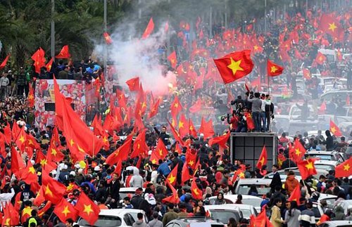 AFP miêu tả hàng nghìn người hâm mộ đứng hai bên đường phố Hà Nội đón tuyển bóng đá U23 về nước bất chấp thất bại trong trận chung kết.