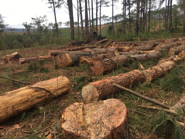 Lợi dụng việc cắt dọn, khai thác tận thu những cây thông bị chết, gãy mục, bị ken tại rừng Cộng đồng bon Bu Koh (tiểu khu 1491, xã Đắk R’tíh, huyện Tuy Đức), một số đối tượng đã cưa hạ, chặt phá trái phép hàng trăm cây thông còn tươi xanh để bán gỗ.