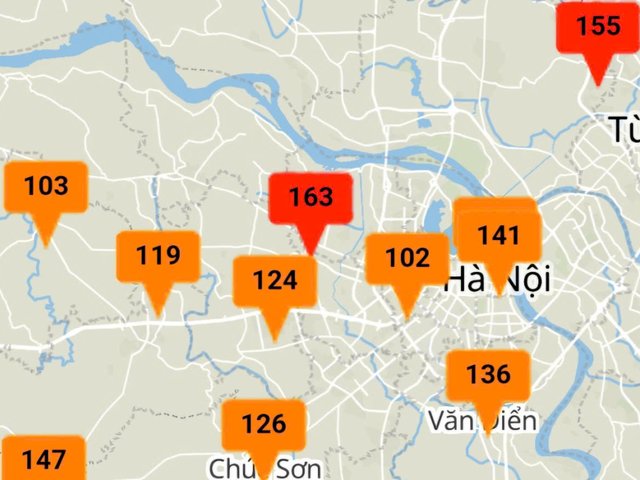 Ngày 8-1, trên địa bàn thành phố Hà Nội còn 2 khu vực chất lượng không khí ở mức xấu (thang màu đỏ), chỉ số AQI là 155-163 còn lại ở mức kém và trung bình, cải thiện hơn so với những ngày trước đó.