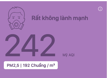 Nơi nào ở Hà Nội ô nhiễm không khí đạt ngưỡng màu tím và nâu sáng nay?