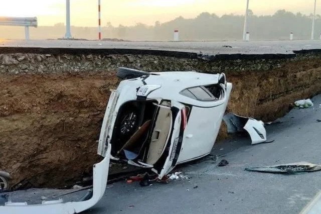 Tại thời điểm xảy ra sập gần mặt cầu Hòa Bình, huyện Châu Thành, Tây Ninh, có 1 ô tô 5 chỗ và 2 xe máy đang lưu thông thì bất ngờ mặt đường bị sụp xuống.