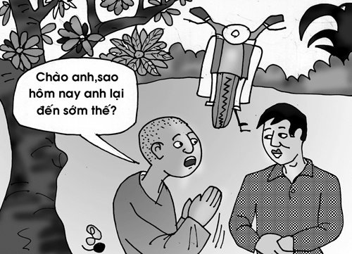 Bình ở trong nhà giam, ruột gan nóng như lửa đốt, đến mức độ anh không thể ngồi thiền được nữa. Anh gọi một cán bộ quản giáo và nói: Cán bộ, bao giờ thì người ta đưa tôi ra xét xử?