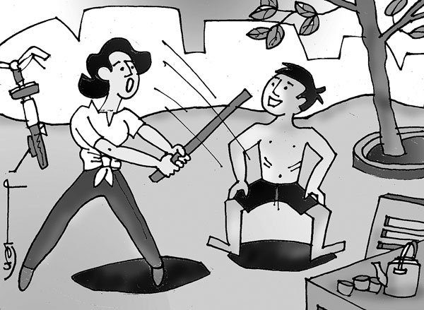 <strong>Buổi sáng tại nhà Bình. Bình dậy sớm tập thể dục. Anh tập đạp xe trong nhà. Bình cắm đầu cắm cổ đạp cho đến khi kim đồng hồ chỉ được 10km.</strong>