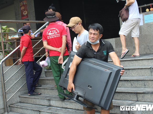 Ảnh: Cư dân chung cư Carina khom lưng cõng tài sản đến chỗ ở tạm