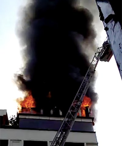 Gần 100 du khách, trong đó có khá nhiều người nước ngoài tháo chạy trong hoảng loạn khi khách sạn cao 12 tầng bốc cháy.