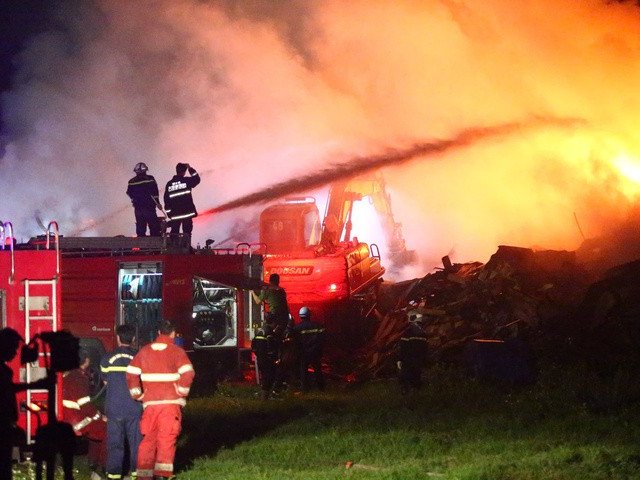 Kho xưởng rộng hàng nghìn m² gần Bệnh viện K Tân Triều, Hà Nội bốc cháy ngùn ngụt lúc rạng sáng nay.