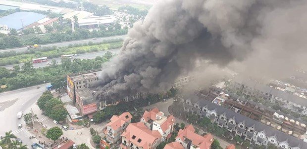 Một đám cháy lớn đã bất ngờ bùng phát và bao trùm dãy nhà liền kề gần khu vực cổng chào Thiên đường Bảo Sơn, xã An Khánh, Hoài Đức, Hà Nội.