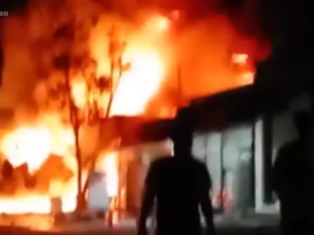 Lửa bốc cao cả chục mét bao trùm cửa hàng điện máy rộng chừng 100m2 ở huyện Tương Dương (Nghệ An).