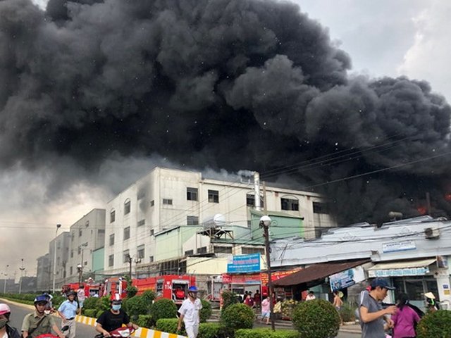 Cháy lớn giữa trưa tại nhà xưởng ở thị xã Dĩ An (Bình Dương), gần trường mầm non và cây xăng nên lực lượng chức năng đang di dời khẩn cấp các em nhỏ ra ngoài.
