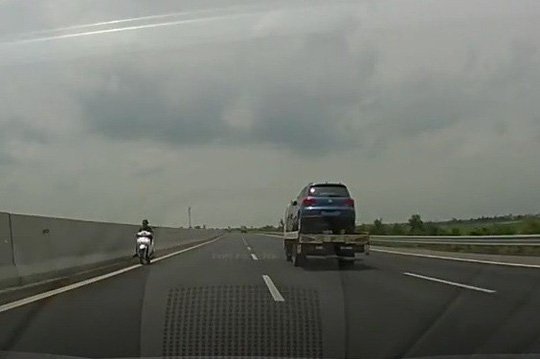 Cục CSGT xử lí người phụ nữ đi xe máy ngược chiều trên cao tốc