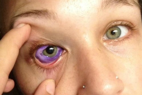 Nữ người mẫu chảy nước mắt tím sau khi xăm tròng mắt