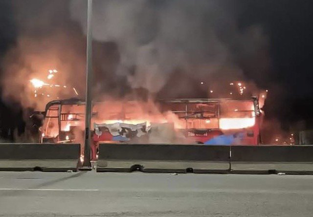 Ôtô khách cháy rụi ở đường trên cao, một người tử vong