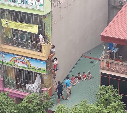 Cháy ở trường mầm non, người dân bắc thang giải cứu hàng chục trẻ