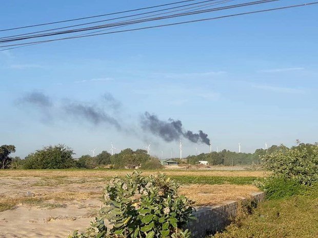 Cháy tuabin trên trụ điện gió của nhà máy phong điện ở Bình Thuận