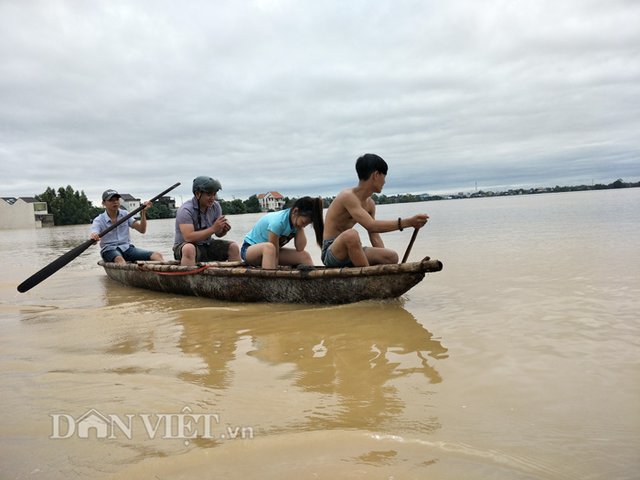 Sau một đêm nước lũ tràn về, nhiều nhà cửa, tài sản, hoa màu của hàng trăm hộ dân ở xã Điện Thắng Nam, thị xã Điện Bàn (Quảng Nam) chìm trong nước, nhiều hộ dân bị "trắng tay" hàng chục triệu đồng đến hàng trăm triệu đồng. Lũ cao đến nỗi, người dân phải chèo thuyền để di chuyển ngay trong sân nhà mình.