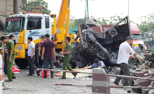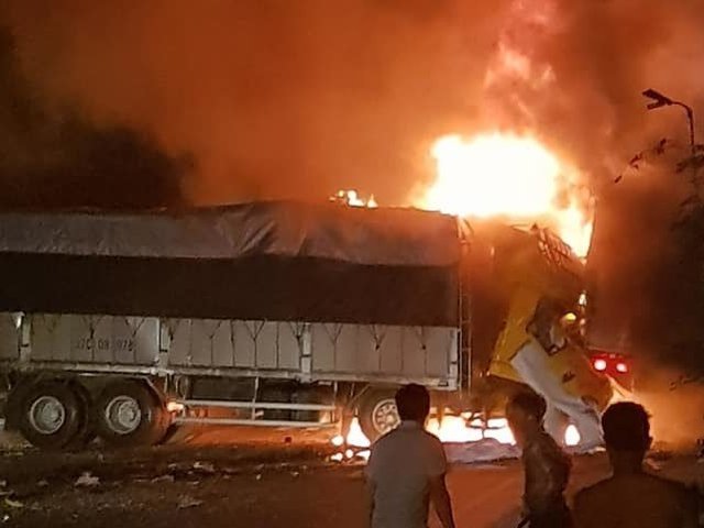 Vụ tai nạn xảy ra khoảng 1h30 sáng nay, đoạn qua địa phận xã Hải Châu (huyện Tĩnh Gia, Thanh Hóa), hậu quả 2 người chết cháy trong cabin.