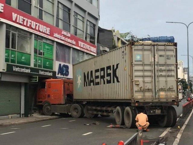 Đường vắng, tài xế xe đầu kéo chạy với tốc độ cao, do ngủ gục mất tay lái nên đã lao xe vào một chi nhánh ngân hàng…