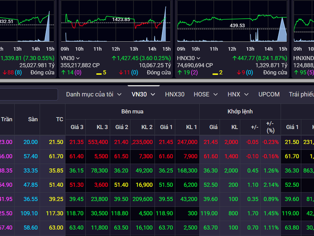 Tiền đổ mạnh vào thị trường, VN-Index bứt tốc tăng hơn 25 điểm