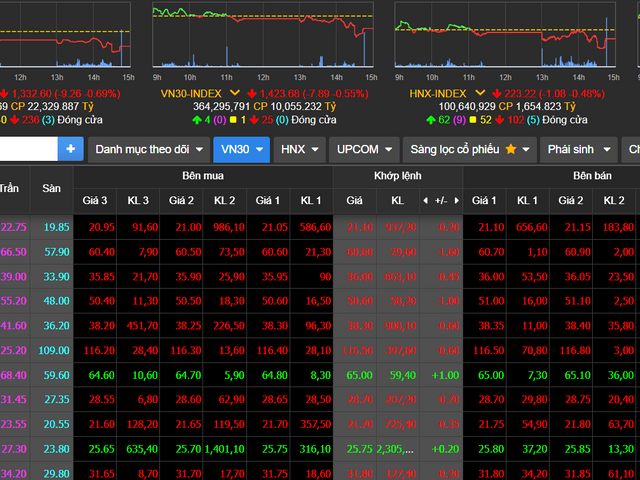 Phiên ngày 30-5, áp lực bán gia tăng khiến chỉ số VN-Index giảm hơn 9 điểm, mất mốc 1.340 điểm.