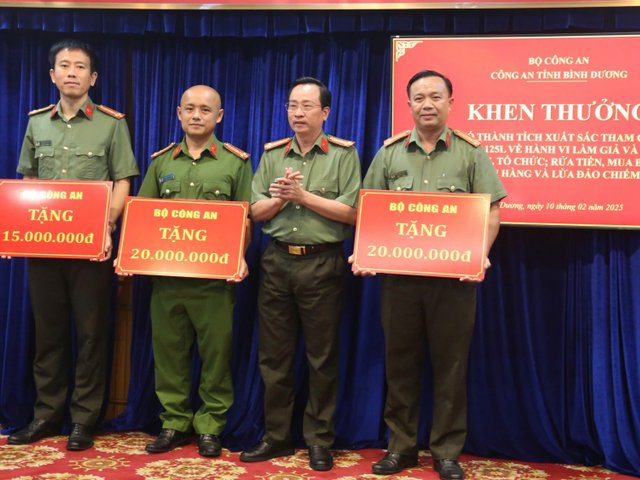 Ngày 10/2, Đại tá Bùi Thanh Trực, Phó Giám đốc, Thủ trưởng Cơ quan An ninh điều tra Công an tỉnh Bình Dương chủ trì Lễ trao thưởng cho các đơn vị nghiệp vụ có thành tích xuất sắc trong đấu tranh triệt xóa thành công chuyên án lợi dụng công nghệ cao làm giả, mua bán tài khoản ngân hàng để lừa đảo, chiếm đoạt tài sản với quy mô lớn.