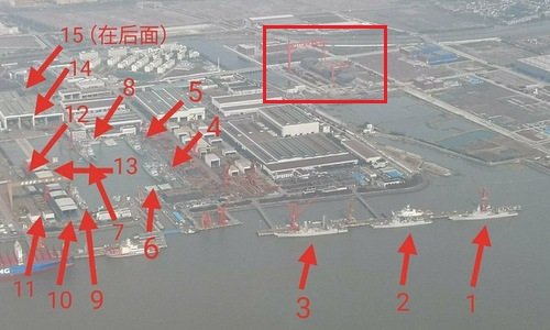 Ảnh chụp nhà máy Giang Nam cho thấy tốc độ đóng tàu rất nhanh của Trung Quốc với nhiều chiến hạm cỡ lớn đang được hoàn thiện.
