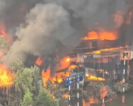 Sáng 11/1, vụ cháy lớn xảy ra tại dãy nhà dân ngay cạnh khu chợ Bình Trưng, đường Nguyễn Duy Trinh (phường Bình Trưng, TP.HCM).