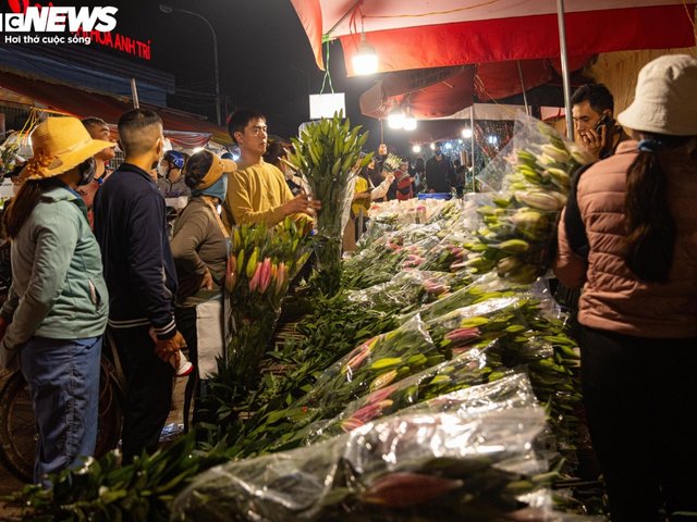 Tối muộn 28 Tết, chợ hoa Quảng An (quận Tây Hồ, Hà Nội) vẫn nhộn nhịp, ken kín người đổ về mua hoa tươi chơi Tết.