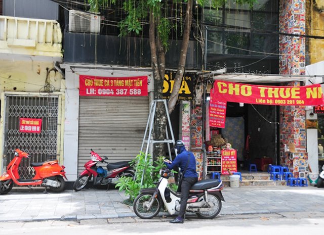 Trên phố Huế vốn nổi tiếng sầm uất, là "thiên đường" kinh doanh tại Hà Nội bỗng xuất hiện la liệt cửa hàng đóng cửa, chủ nhà phải treo biển cho thuê.