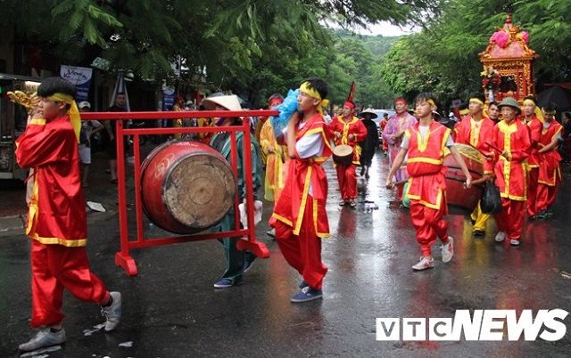 Hàng nghìn người cùng các đoàn của 7 phường trống giong cờ mở rước các ông trâu về đấu trường khai mạc Lễ hội chọi trâu truyền thống Đồ Sơn năm 2018 Hải Phòng.