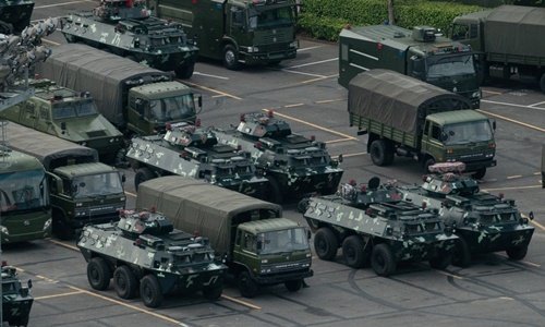 Cảnh sát Trung Quốc diễn tập chống bạo động gần Hong Kong