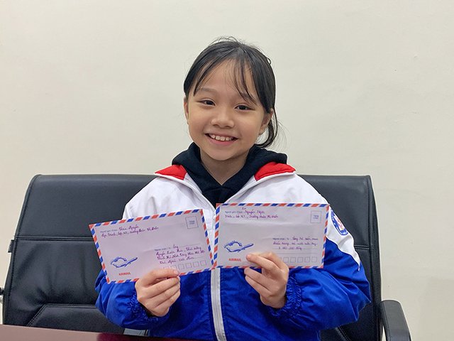 Em Nguyễn Ngọc Trinh, lớp 4C1, trường Tiểu học Đoàn Thị Điểm, mang bức thư gửi Thủ tướng cùng hơn 3 triệu đồng tiền lì xì đến Thành đoàn Hà Nội, ngày 5/2.