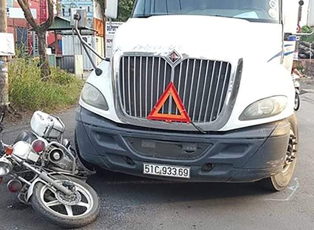 Tổ công tác yêu cầu dừng xe nhưng tài xế không chấp hành mà lái ô tô tông vào đuôi, sườn xe CSGT làm xe quay ngang, phần đầu xe va vào tôn hộ lan rồi mới dừng lại.