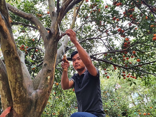 Cây quýt được chuyển từ huyện miền núi Nghệ An về TP Vinh để bán tết đang được rao giá 100 triệu đồng.