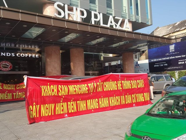 Bức xúc vì bị khách sạn Mercure tự ý tắt hệ thống chuông báo cháy, lối thoát hiểm tầng thượng bị khóa lại và nhiều khoản thu phí không hợp lý, một số cư dân sinh sống tại chung cư SHP Plaza Hải Phòng đã nhiều lần căng băng rôn, yêu cầu chủ đầu tư có câu trả lời thỏa đáng.