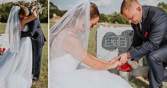 Cô dâu làm chú rể ngạc nhiên khi quyết định chụp ảnh cưới tại chính ngôi mộ của người mẹ nuôi của chú rể.