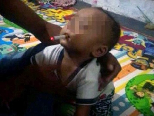 Bố ép con 9 tháng tuổi hút thuốc lá để chụp ảnh