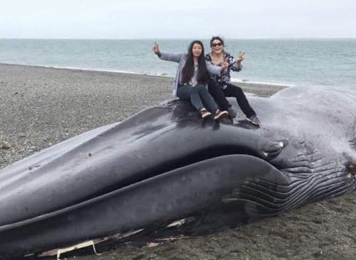Du khách bị chỉ trích vì tạo dáng, khắc chữ lên xác cá voi