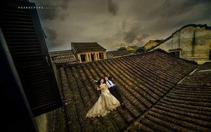 Nhiều bạn trẻ trèo lên những mái nhà cổ ở Hội An để chụp hình cưới