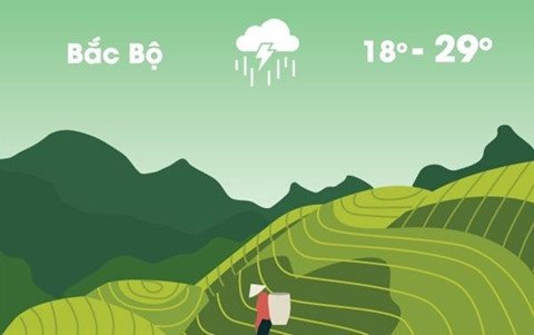 Ảnh hưởng của không khí lạnh, khu vực Đông Bắc Bộ và Tây Bắc Bộ trời chuyển rét; miền núi có thể rét đậm và xảy ra mưa. Từ Thanh Hóa xuống khu vực Nam Bộ, chiều tối và đêm có mưa rào.
