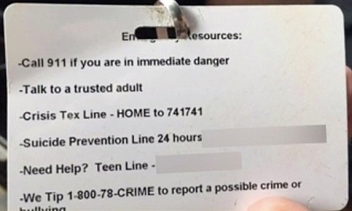 Trường trung học New Vista ở Lancaster (bang California) in danh sách đường dây nóng lên mặt sau thẻ ID học sinh, nhưng đã xảy ra sai sót.