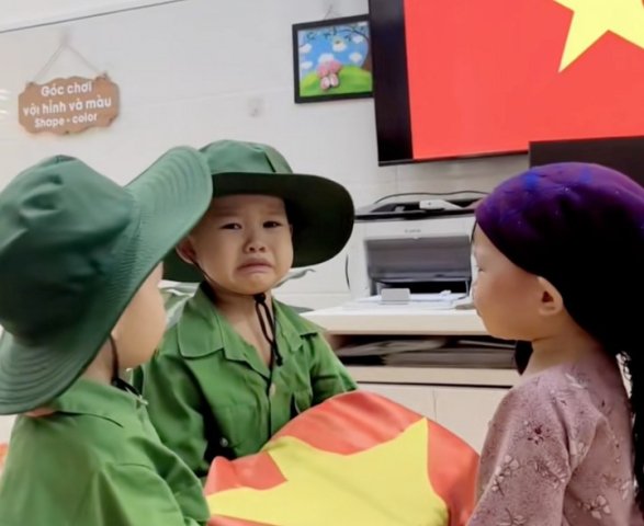 Clip 3 bé mầm non ở Hà Nội diễn hoạt cảnh về liệt sỹ khiến dân mạng rơi lệ
