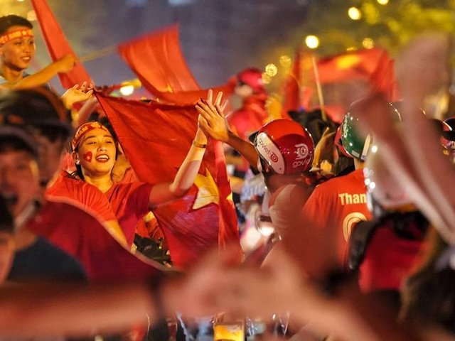Sau chiến thắng 2-1 của Việt Nam trước Philippines, người hâm mộ cả nước đổ ra đường reo hò, ăn mừng.