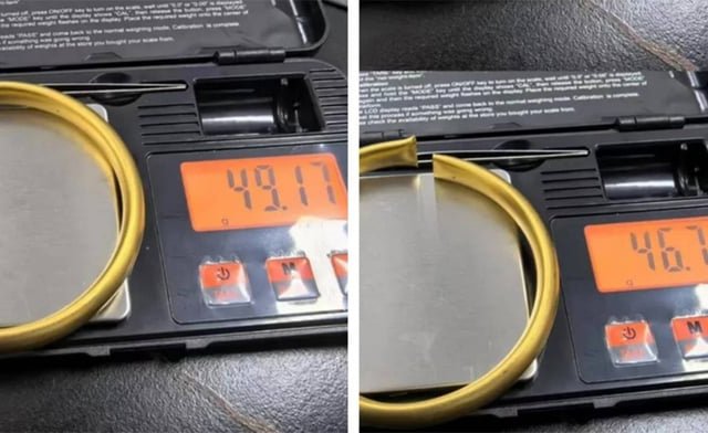 Mang chiếc lắc tay bằng vàng đi bán, cô gái sững sờ nhận ra nó rỗng ruột và có nước chảy ra, cân lại thì vòng nhẹ hơn gần nửa chỉ so với trước.